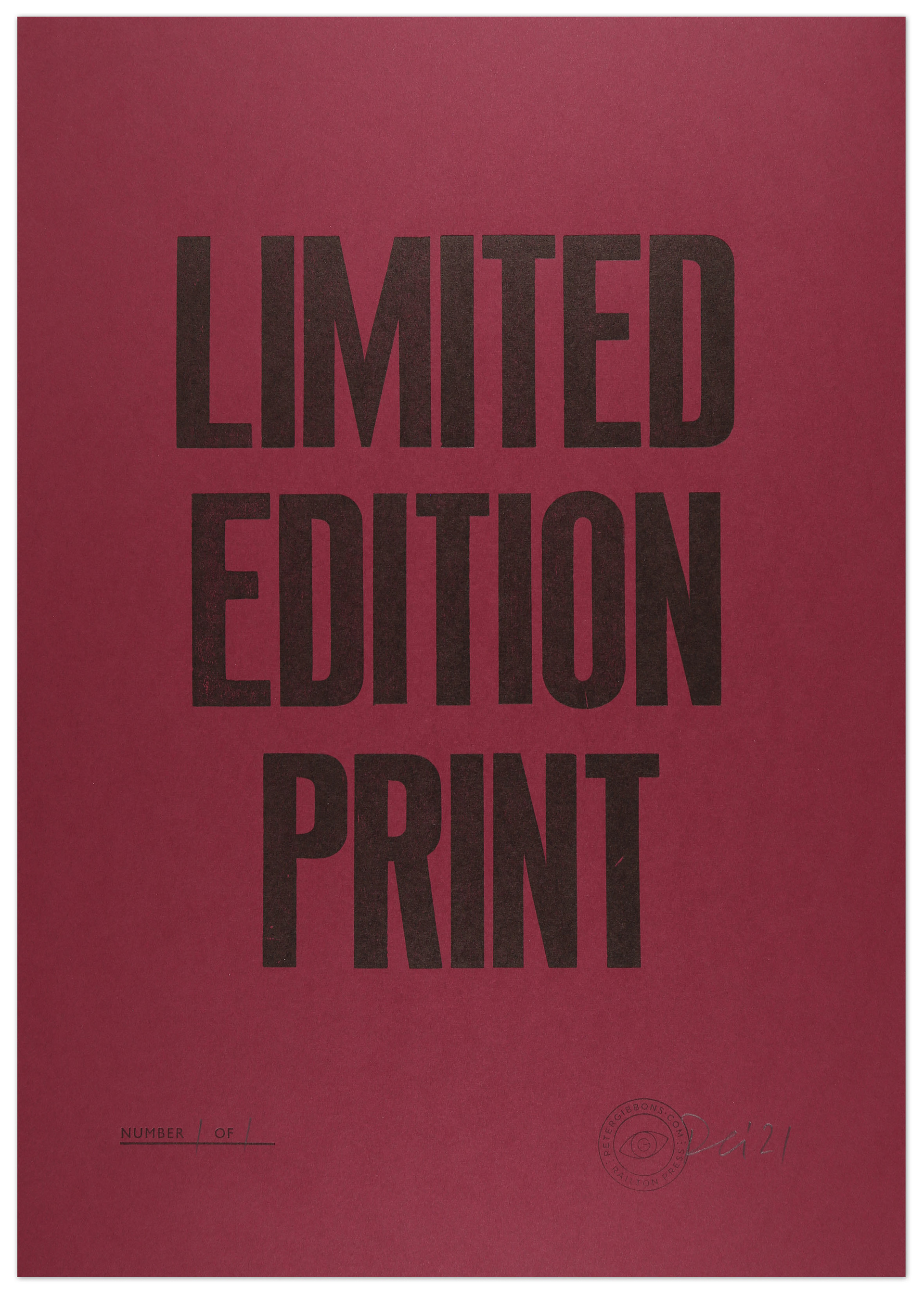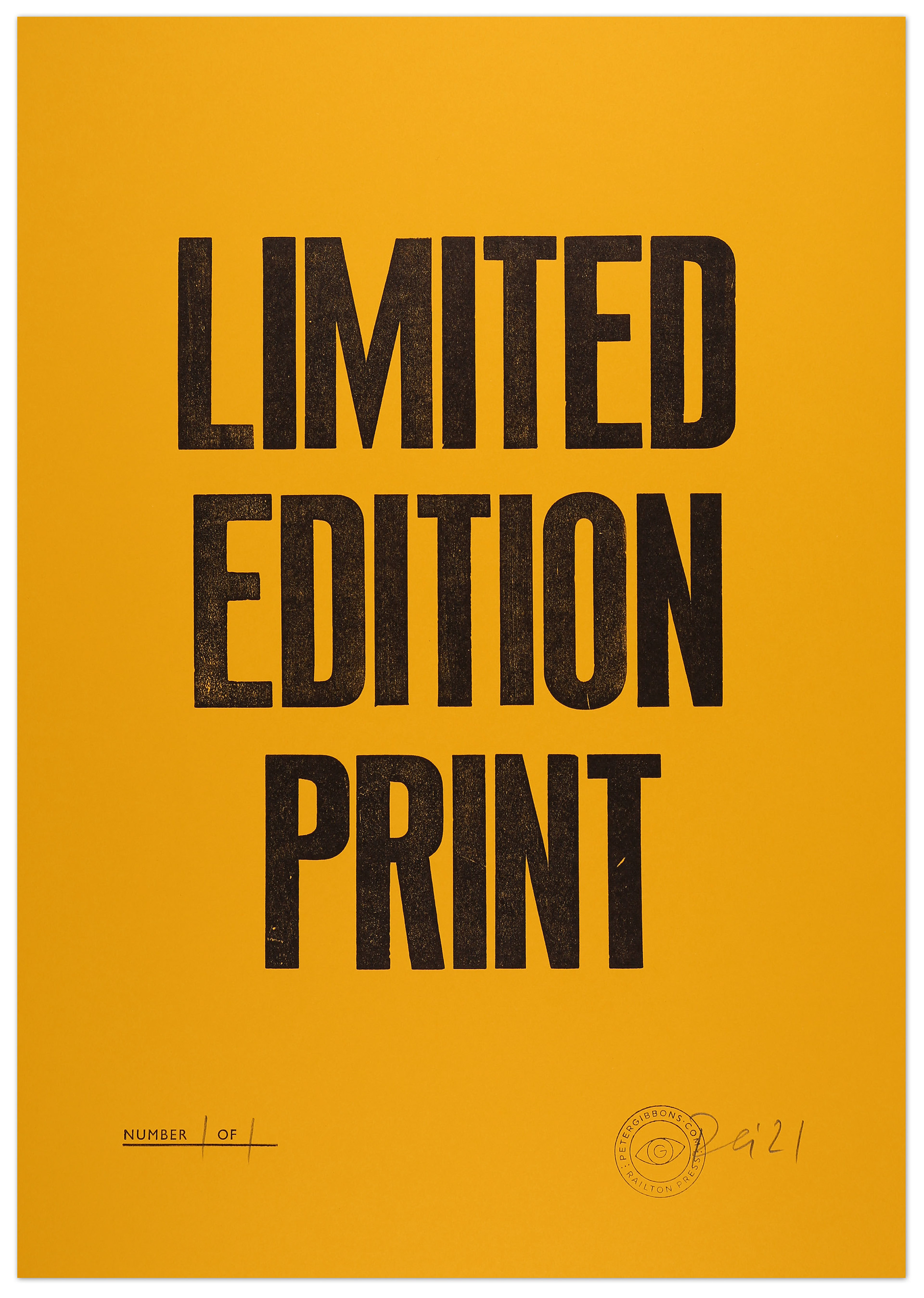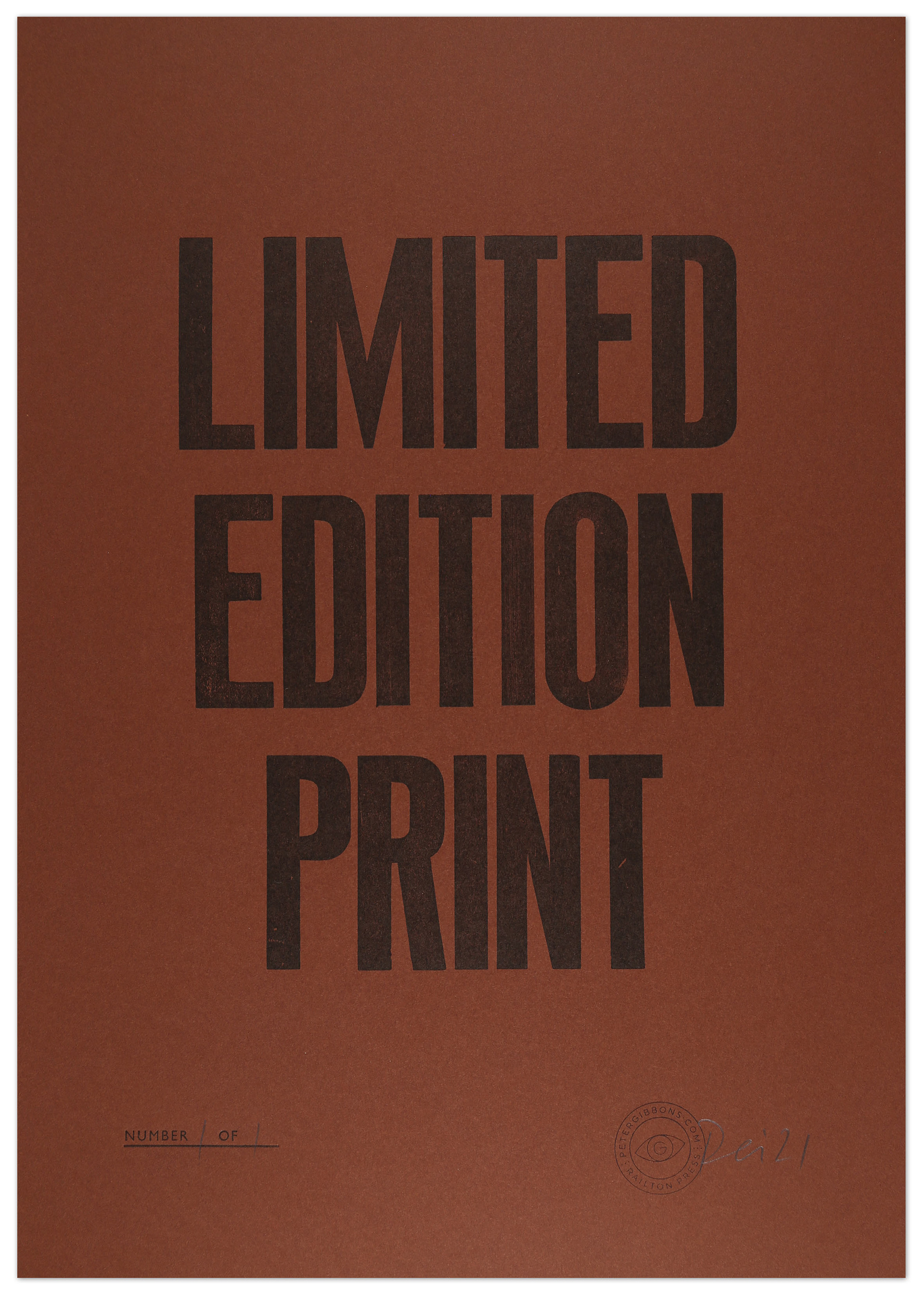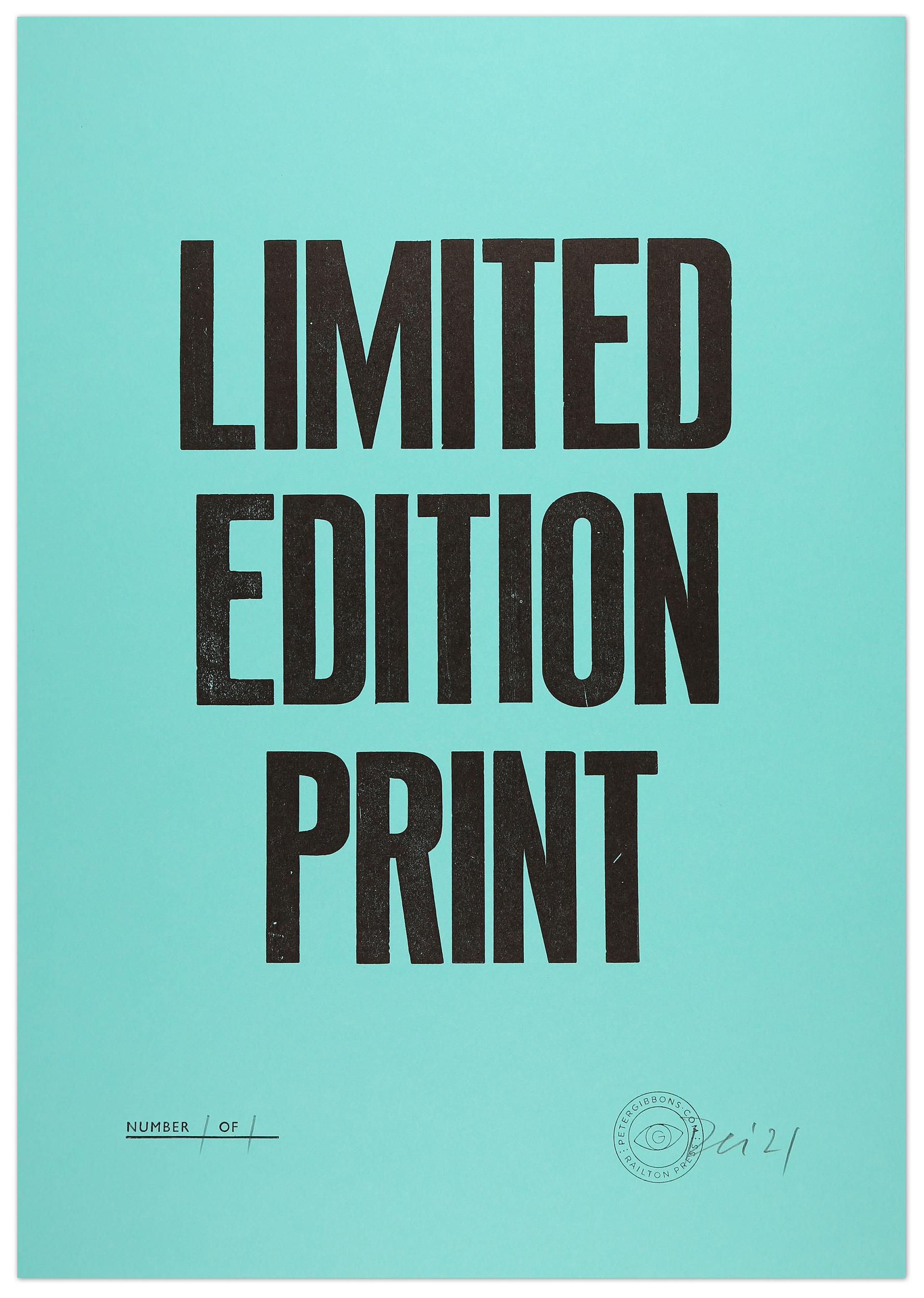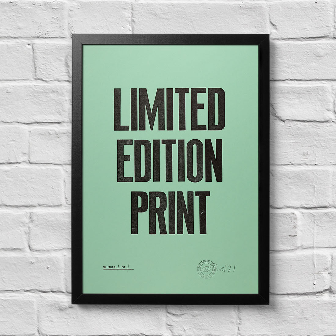 A series of twenty-six single edition letterpress prints. Hand-printed in-house using antique woodtype on deep-dyed, lightfast coloured card using Plum Black ink. Numbered, signed and stamped, each print is one of a kind.